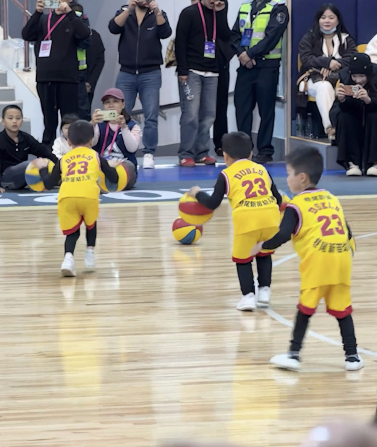 “咱们每年皆会举行幼儿技俩篮球展示,本年照旧是第七届了。”翟笑芳先容,小一又友从两岁半开动,就引入篮球基础执行,针对不同庚岁段成立不同成见:小班孩子学习拍球、回身等基础行为;大班孩子则掌合手更难手段,如同期运两个球。